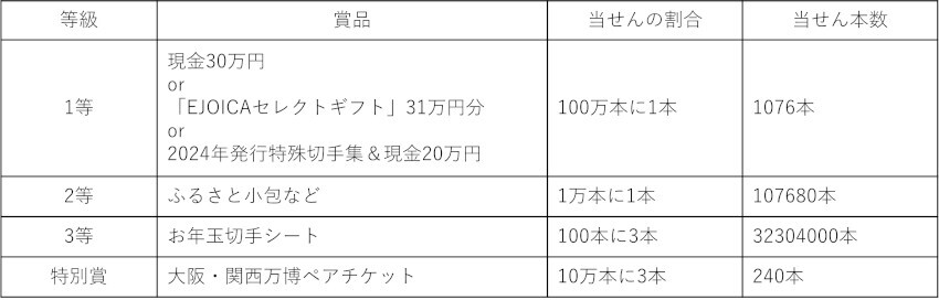お年玉の当選本数と景品