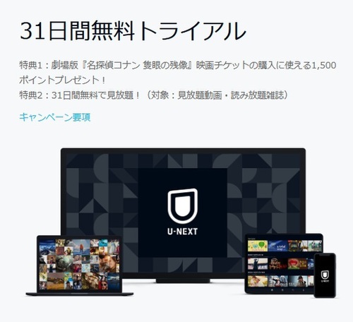しかも31日間はU-NEXTを見放題です。(対象:見放題動画・読み放題雑誌)