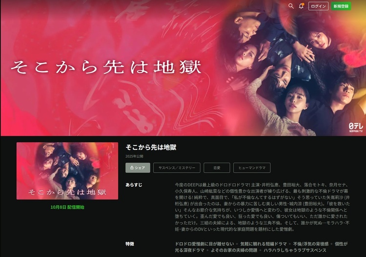 『そこから先は地獄』は2025年10月7日(火)24:24より日本テレビ系で放送開始される衝撃の不倫ドラマ。