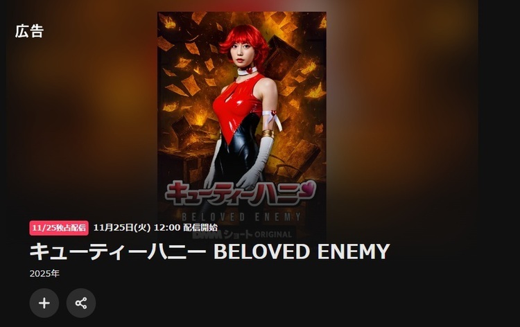『キューティーハニー BELOVED ENEMY』は、DMM TVの縦型ショートドラマ枠「DMMショート」で独占配信が決定しています。