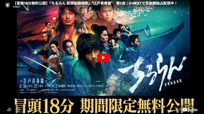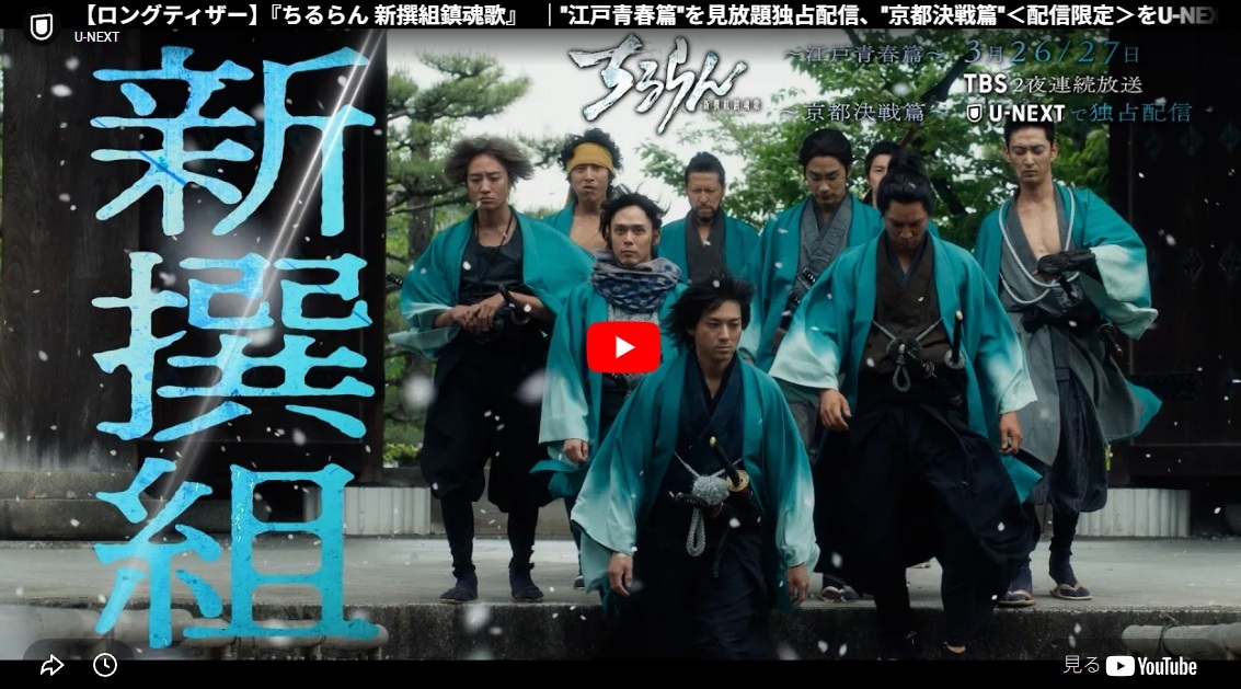 ▶ U-NEXTの無料登録ページちるらん 新撰組鎮魂歌のドラマ配信はU-NEXT